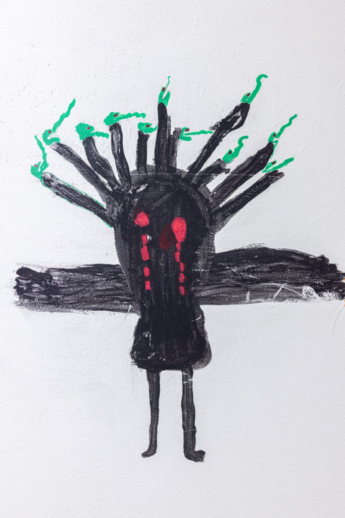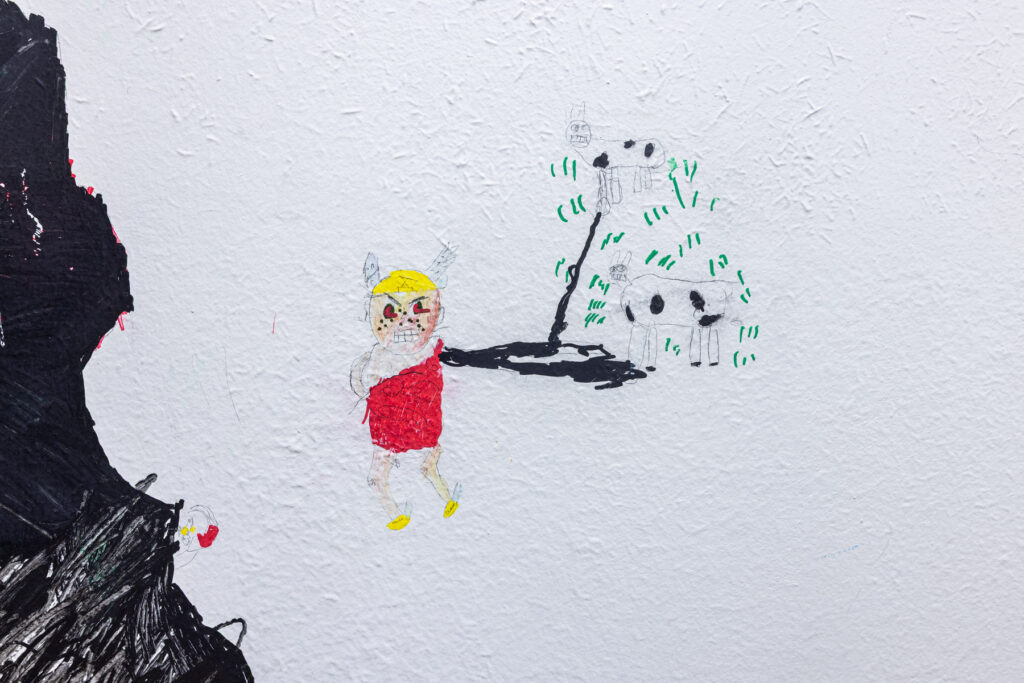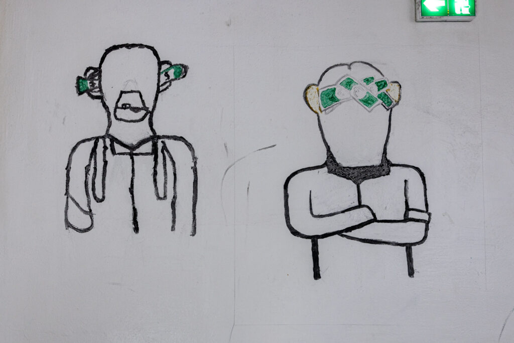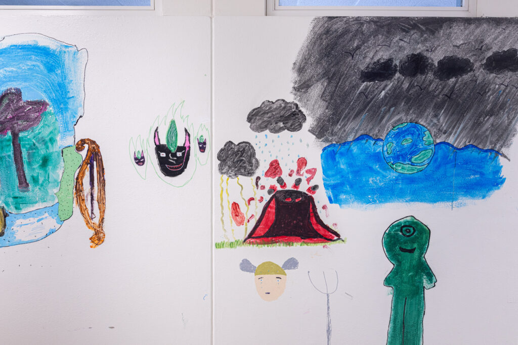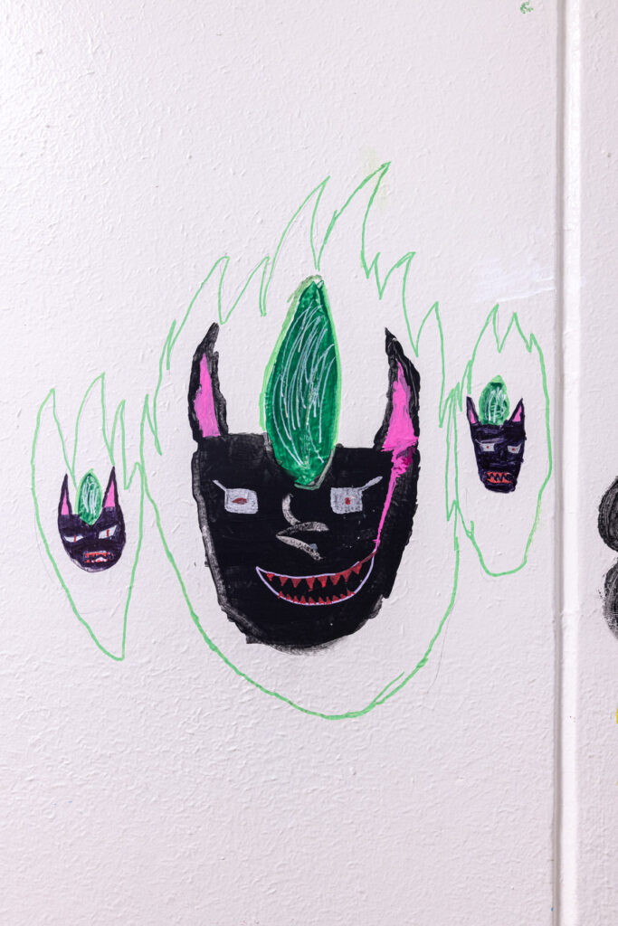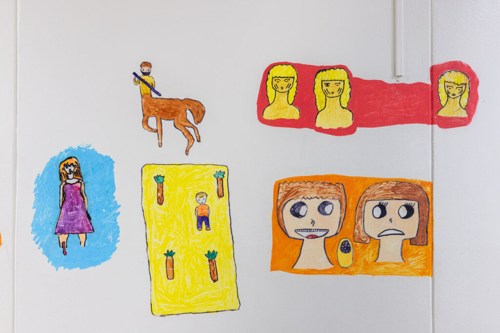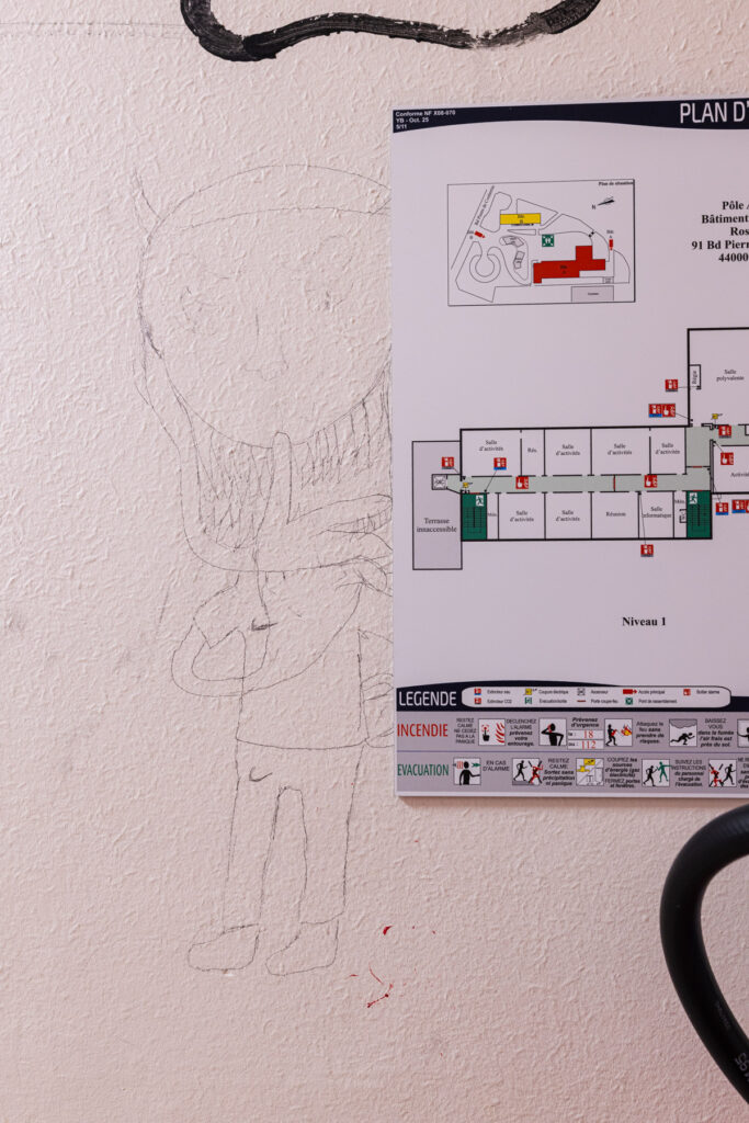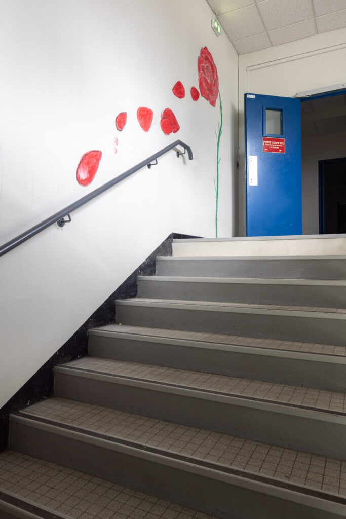 La dernière année avant la fermeture du collège, les élèves ont été autorisé·es à peindre librement sur les murs de l’établissement. Pendant quelques semaines, les couloirs et les salles se sont transformés en espaces d’expression spontanée : dessins, signatures, personnages, slogans, fragments de récits ou de rêves ont recouvert les murs du bâtiment promis à la transformation.
